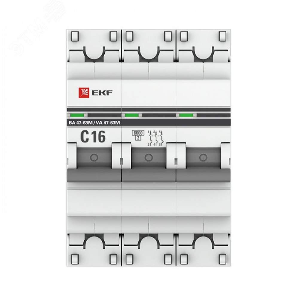 Описание Автоматический выключатель 3P 16А (C) 6кА ВА 47-63M без теплового расцепителя PROxima mcb4763m-6-3-16C-pro