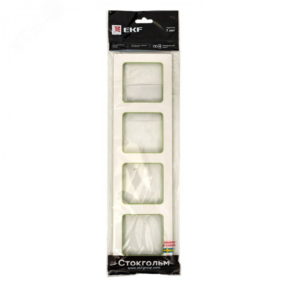 Стокгольм Рамка 4-местная белая с линией цвета зеленый PROxima EAM-G-303-10, Аксессуар для скрытого монтажа