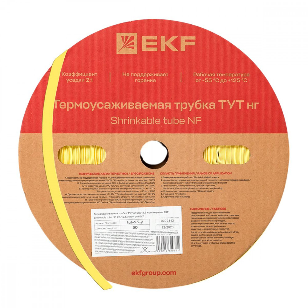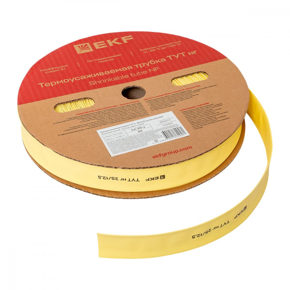 Описание Термоусаживаемая трубка ТУТ нг 25/12,5 желтая рулон PROxima tut-25-y