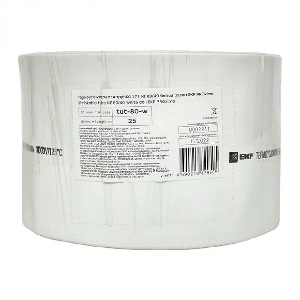 Доставка Термоусаживаемая трубка ТУТ нг 80/40 белая рулон PROxima tut-80-w