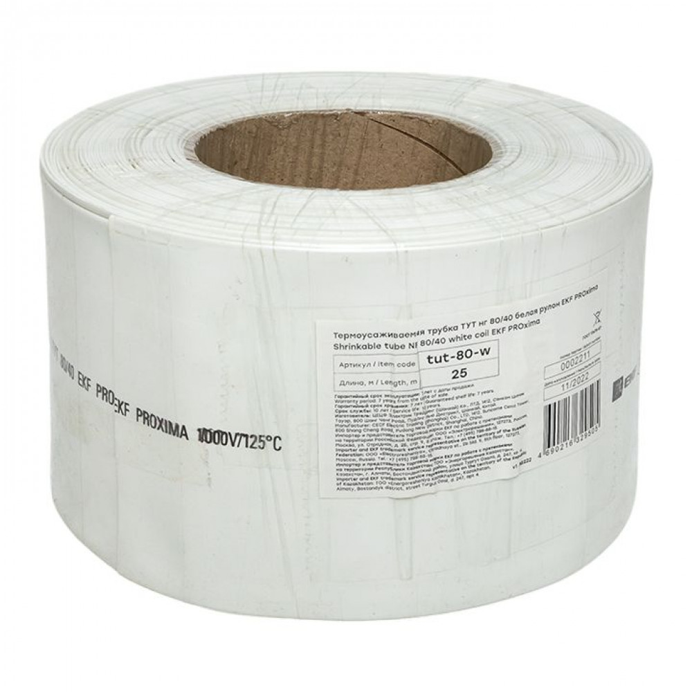 Описание Термоусаживаемая трубка ТУТ нг 80/40 белая рулон PROxima tut-80-w