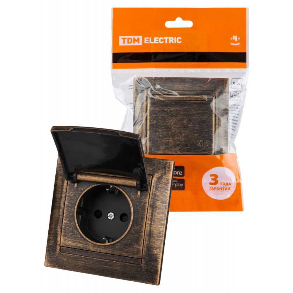 Розетка 2П+З 16А 250В IP44 с защ. шт. с крышкой старинная бронза "Лама" SQ1815-0755, Розетка скрытого монтажа