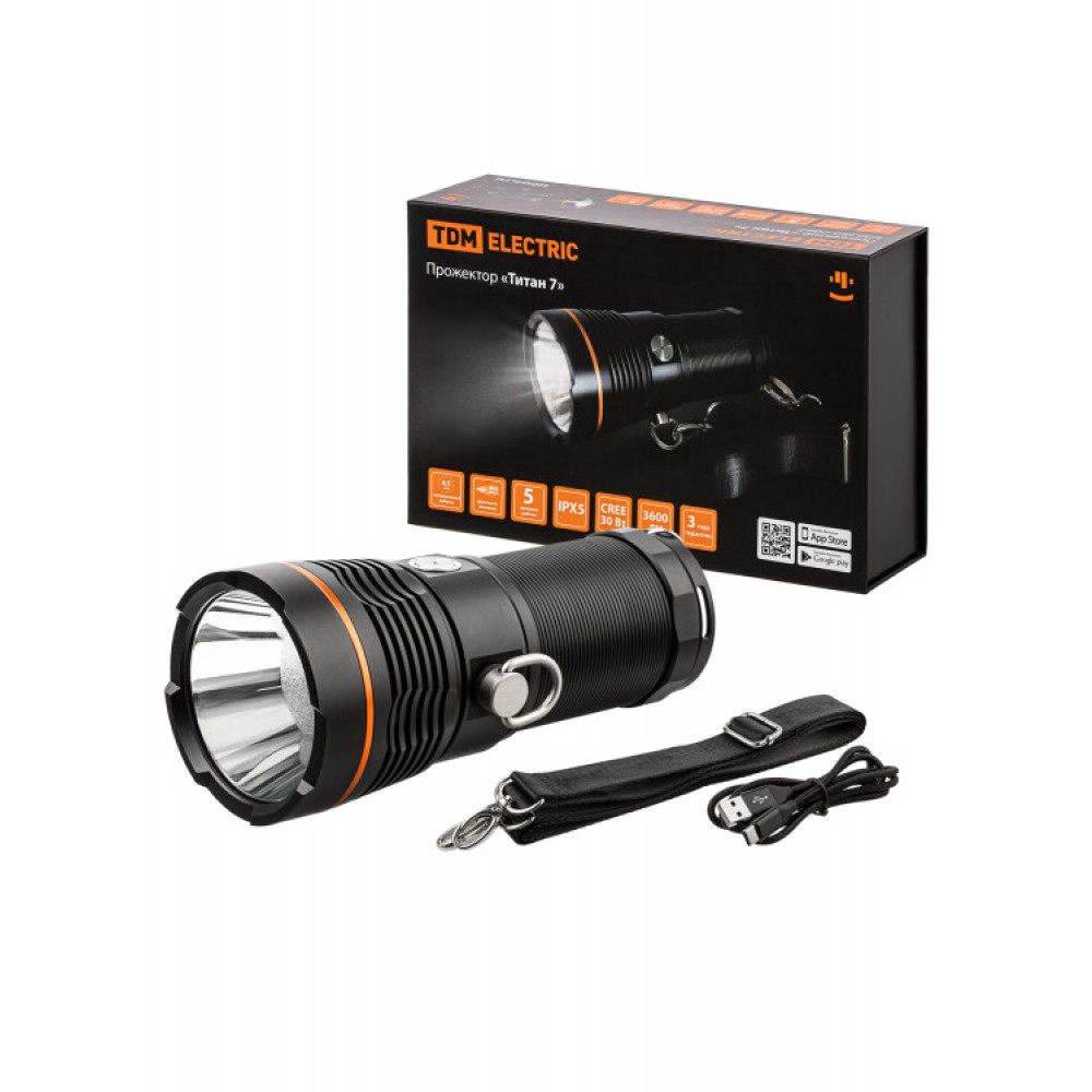 Прожектор «Титан 7», 30 Вт CREE 3600 лм, 4х18650, IPX5, Type-C, SQ0350-0067, Прожектор