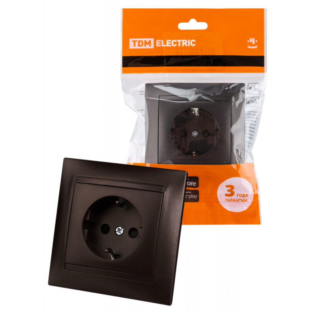 Описание Розетка 2П+З 16А 250В с защ. шт. шоколад "Лама" SQ1815-0511