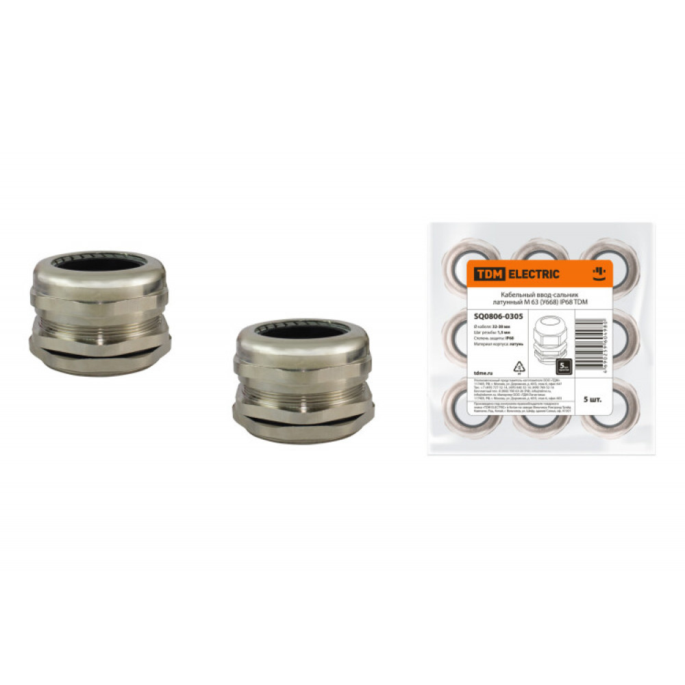 Кабельный ввод-сальник латунный М 63 (У668) IP68 SQ0806-0305, Ввод кабельный и аксессуар к нему