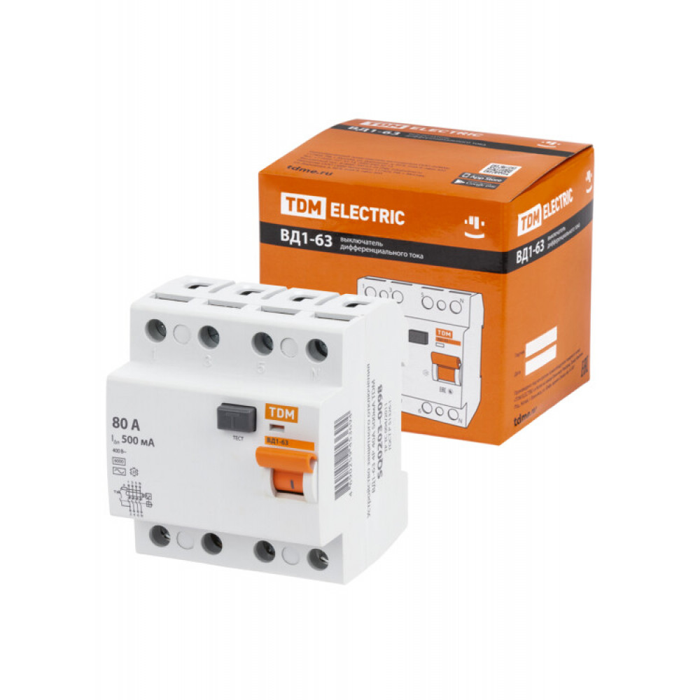 Доставка УЗО ВД1-63 4Р 80А 500мА SQ0203-0101
