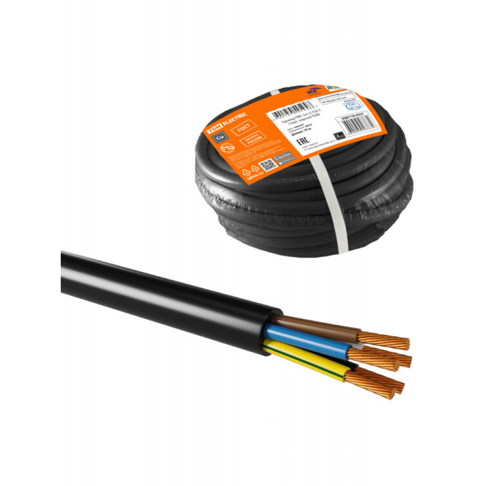 Описание Провод ПВС 5х1,5 ГОСТ (10м), черный SQ0118-0327