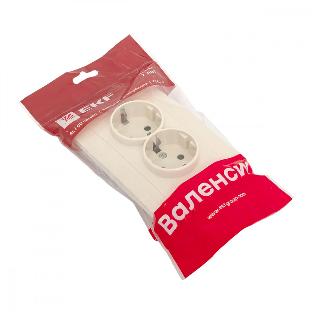 Описание Валенсия розетка 2-местная с/з 16А кремовая с защ. штор. PROxima EWR16-128-20