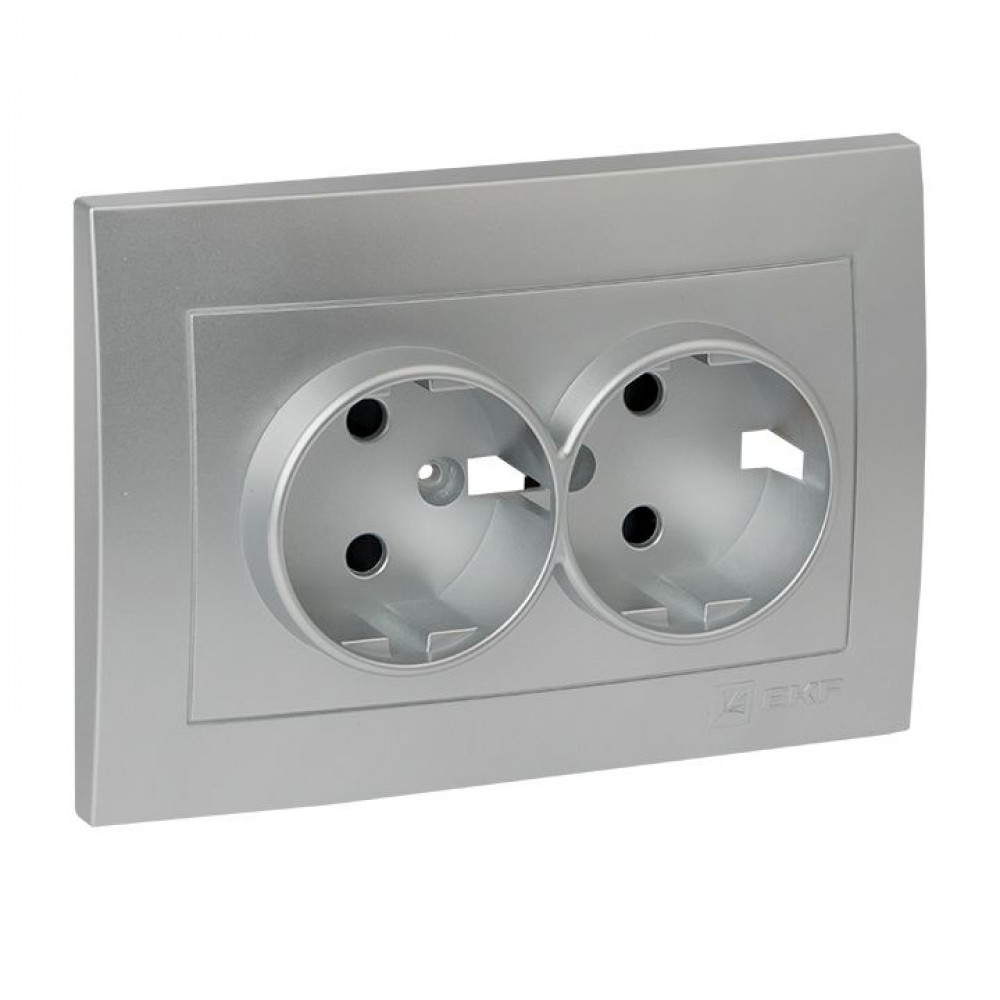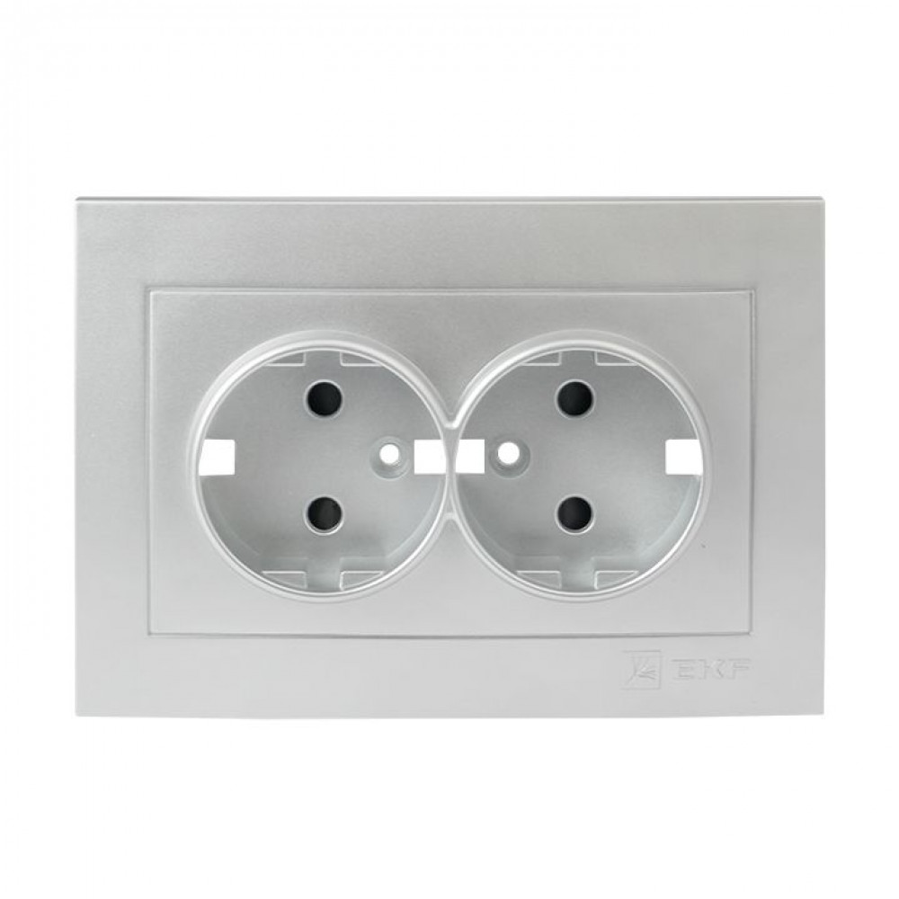 Валенсия лицевая панель розетки 2-местной с/з 16А сталь с защ. штор. PROxima ESR16-L-128-30, Розетка скрытого монтажа