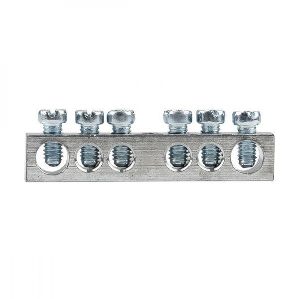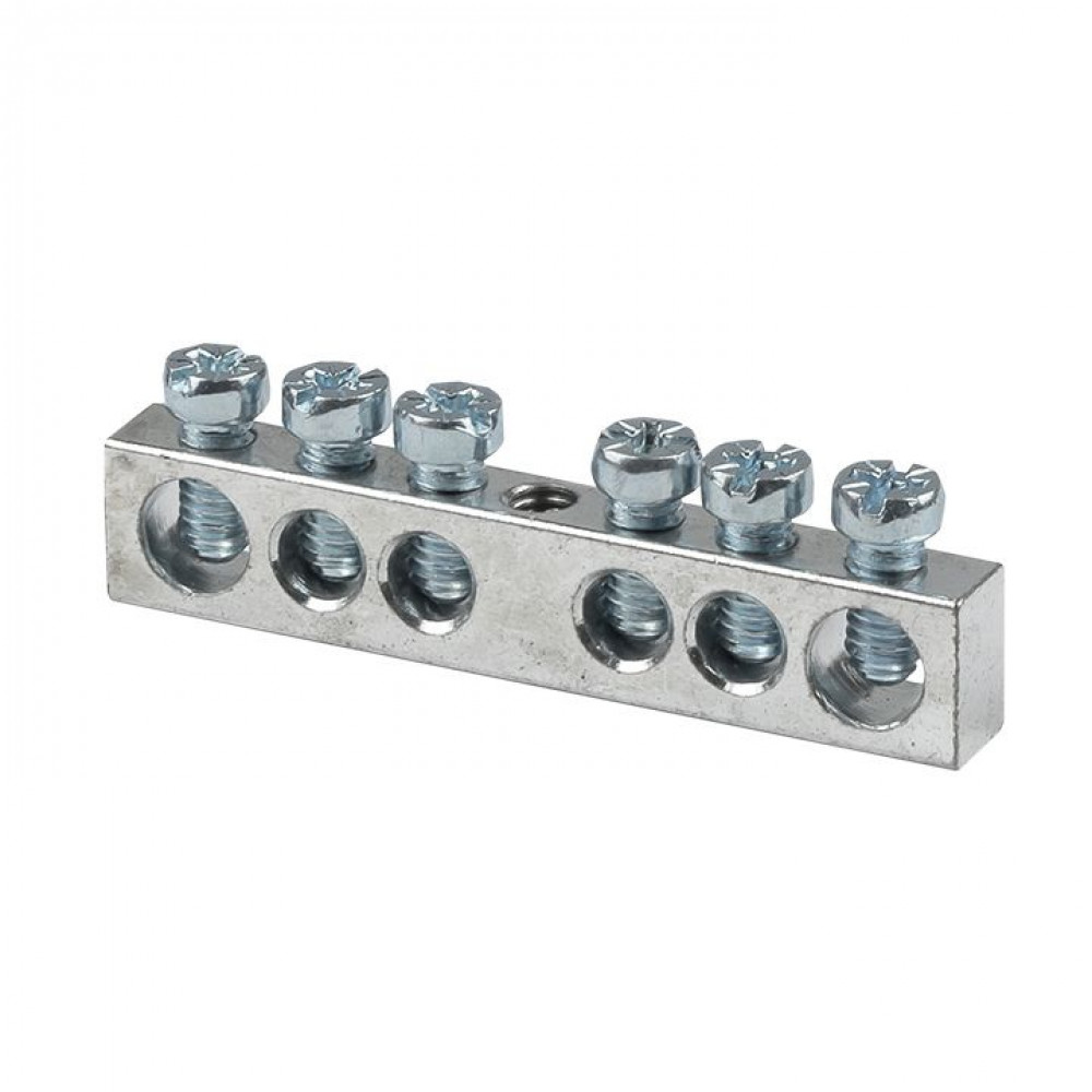Шина PEN "ноль-земля" (6x9мм) 6 отв. цинк крепеж по центру sn1-63-06, Блок клеммный и нулевая шина
