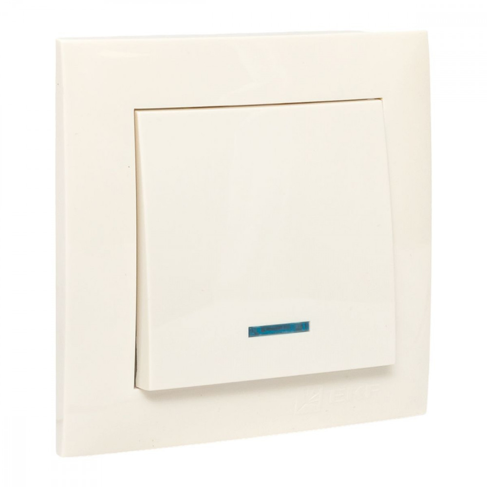 Валенсия выключатель 1-кл. 10А кремовый с индикатором PROxima EWV10-121-20, Выключатель и переключатель скрытого монтажа
