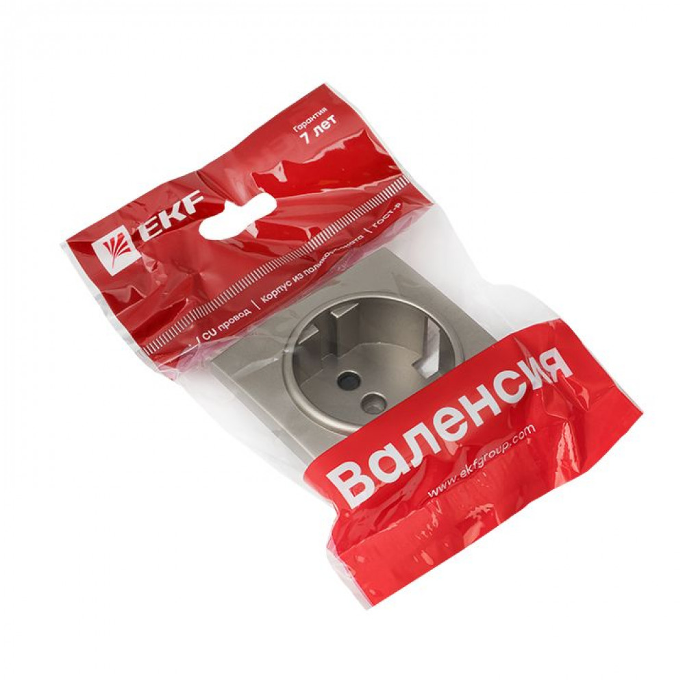 Валенсия лицевая панель розетки 1-местной с/з 16А кашемир с защ. штор. PROxima ESR16-L-028-40, Розетка скрытого монтажа