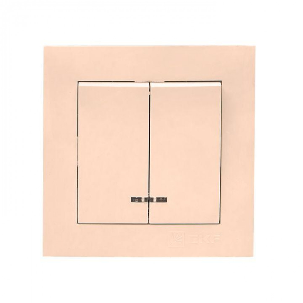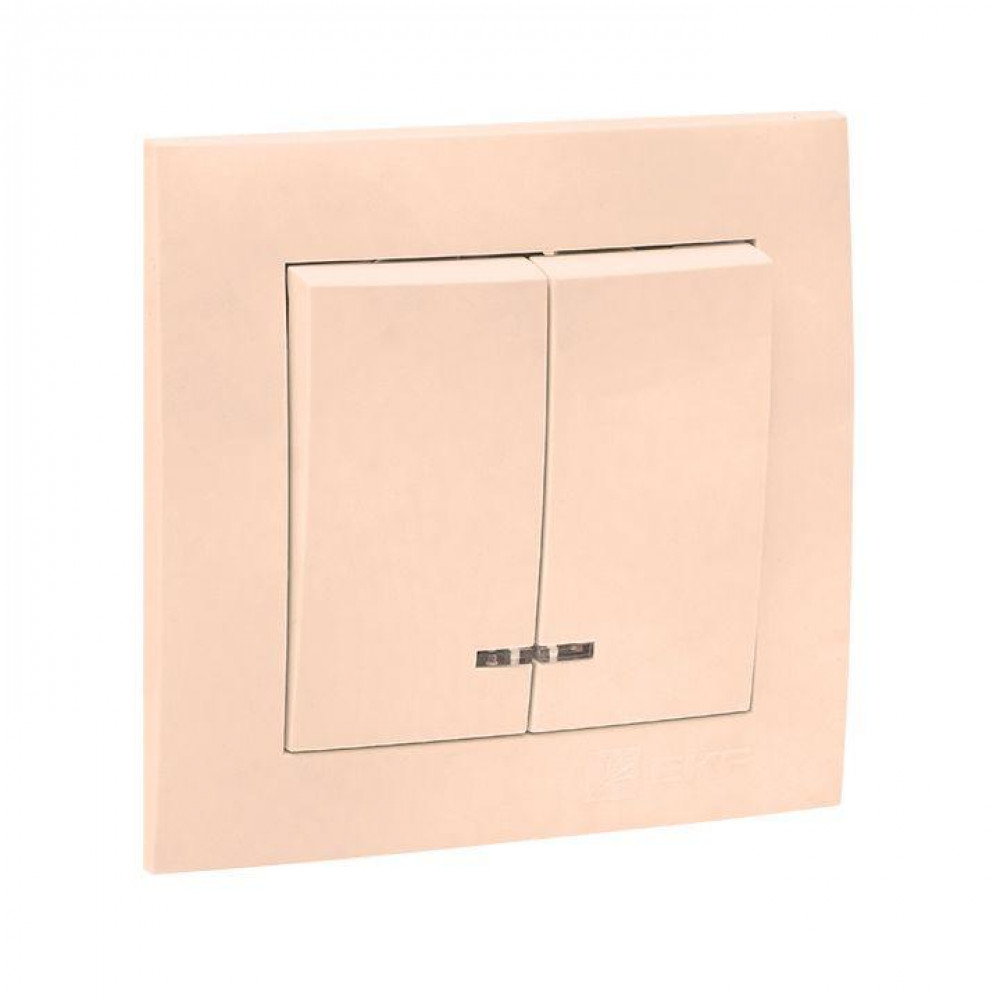 Валенсия выключатель 2-кл. 10А кремовый с индикатором PROxima EWV10-123-20, Выключатель и переключатель скрытого монтажа