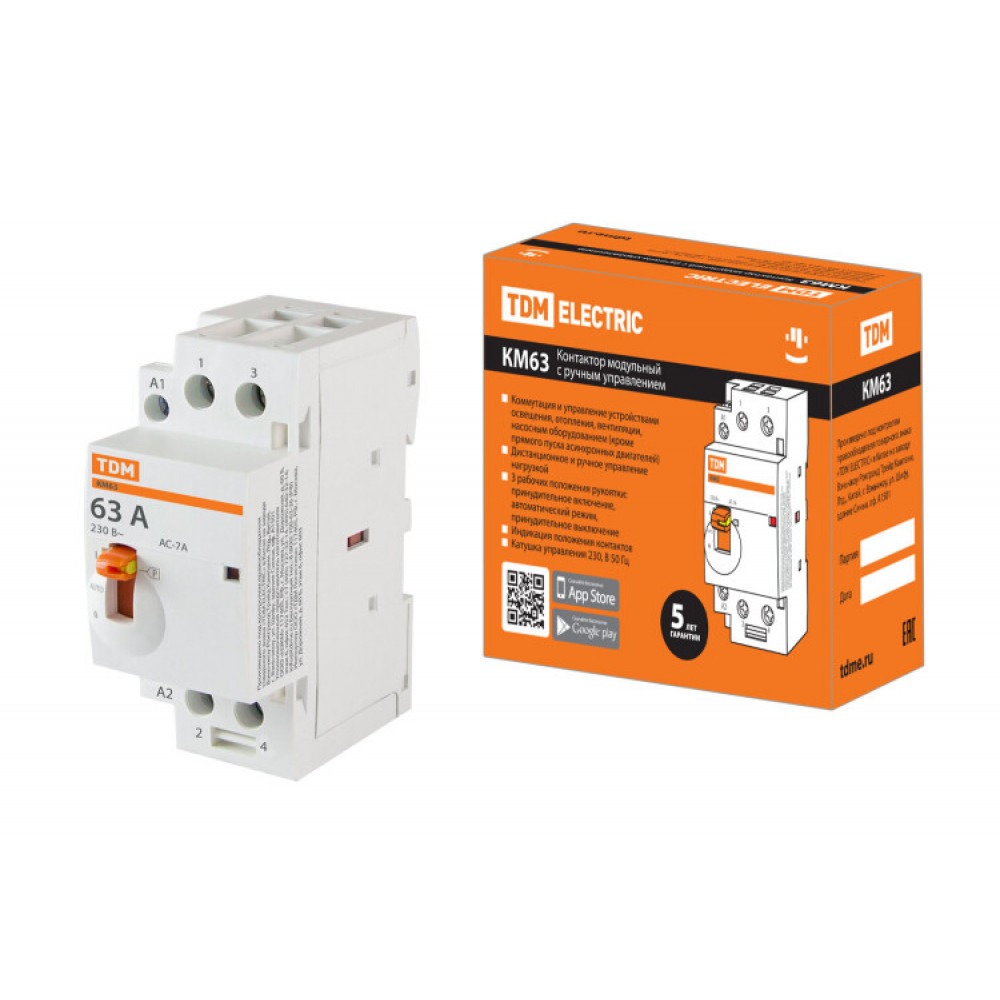 Контактор модульный с ручным управлением КМ63/2-63 2НО 230В АС SQ0213-0104, Контактор в модульном исполнении