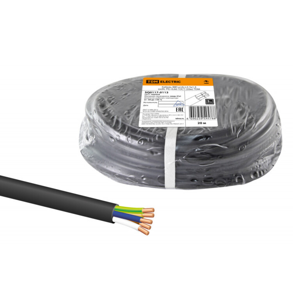Описание Кабель ВВГнг(А)-LS 5х1,5 ок(N, PE)-0,66 ГОСТ (20м) SQ0117-0113