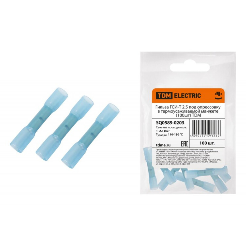 Доставка Гильза ГСИ-Т 2,5 под опрессовку в термоусаживаемой манжете (100шт) SQ0589-0203