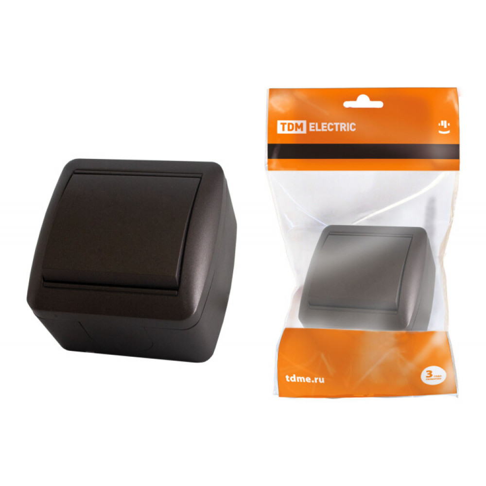 Описание Выключатель 1-кл. открытой установки IP44 10А шоколад "Селигер" SQ1818-0201