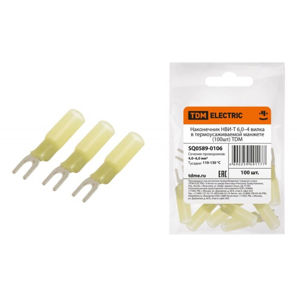 Наконечник НВИ-Т 6,0–4 вилка в термоусаживаемой манжете (100шт) SQ0589-0106, Наконечник, гильза