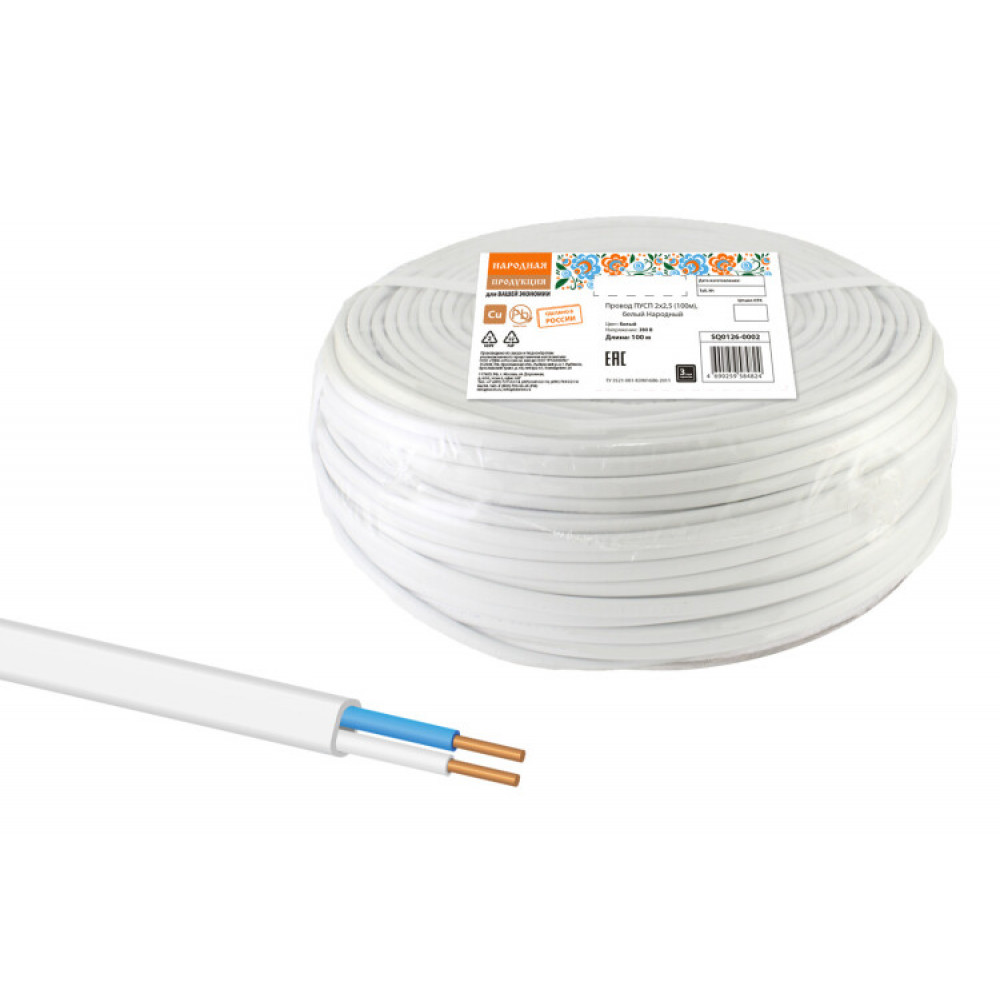 Провод ПУСП 2х2,5 (100м), белый Народный SQ0126-0002, Кабель и провод силовой для стационарной прокладки