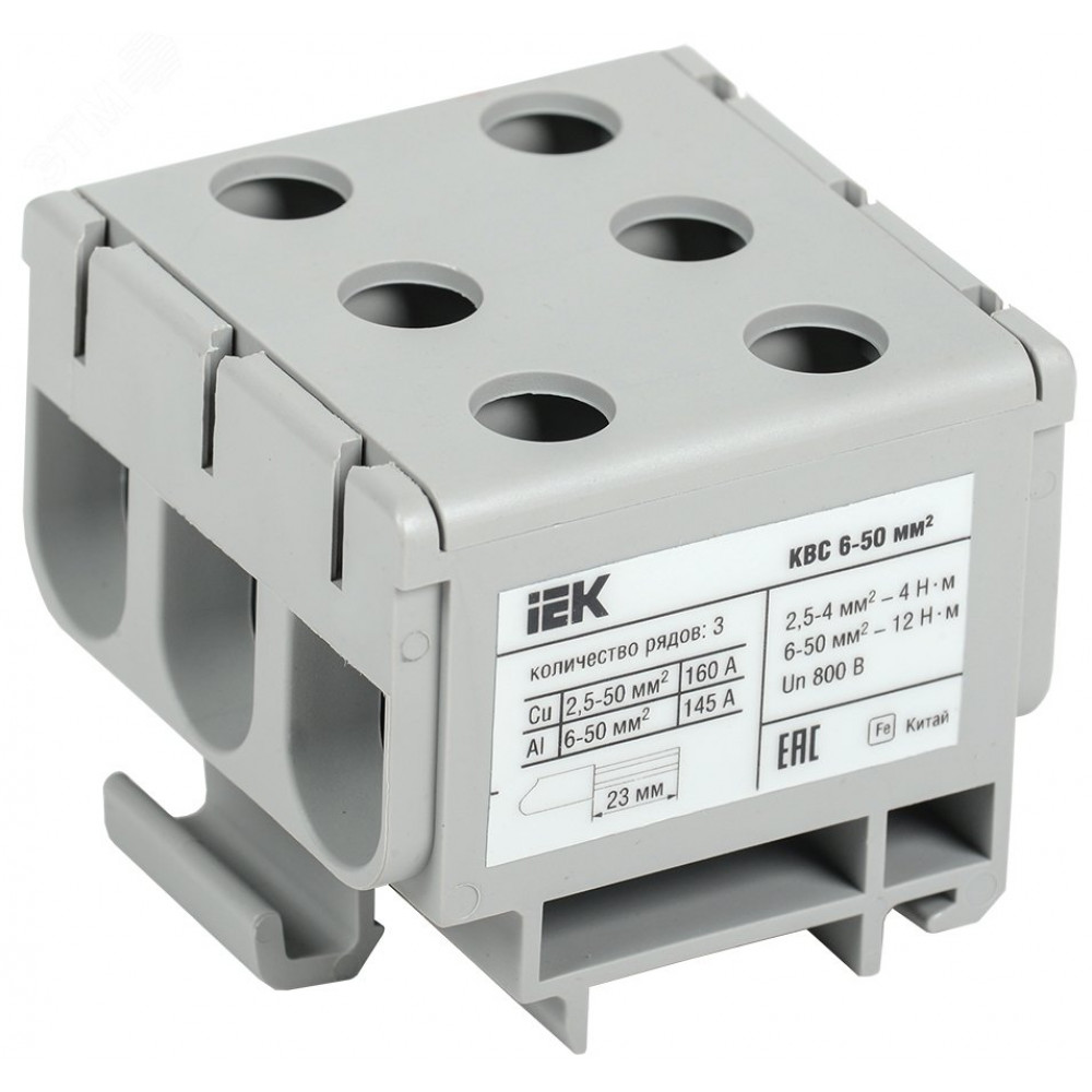 Описание Клемма вводная силовая КВС 6-50 кв.мм. 3-рядная серая YZN14-050-K03