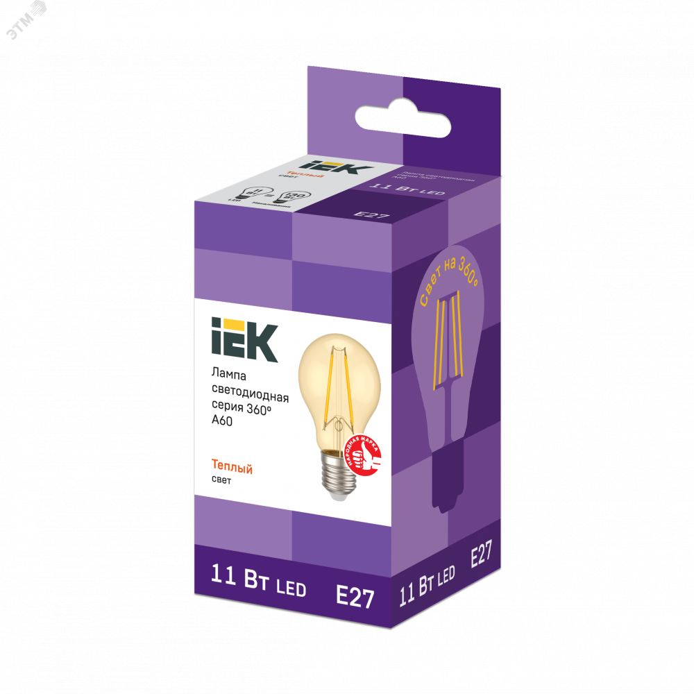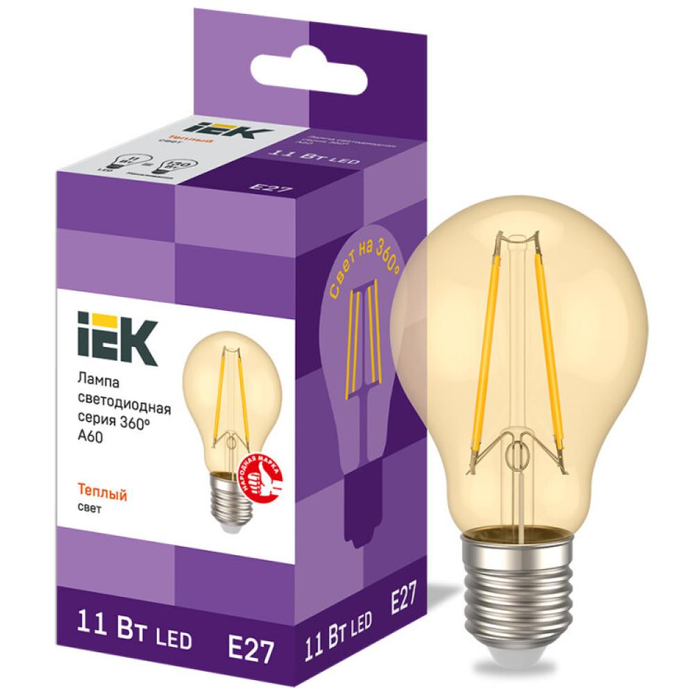 Лампа LED A60 груша золото 11Вт 230В 2700К E27 серия 360° IEK с нитевидным светодиодом (филаментная нить) является одним из самых эффективных источников света.