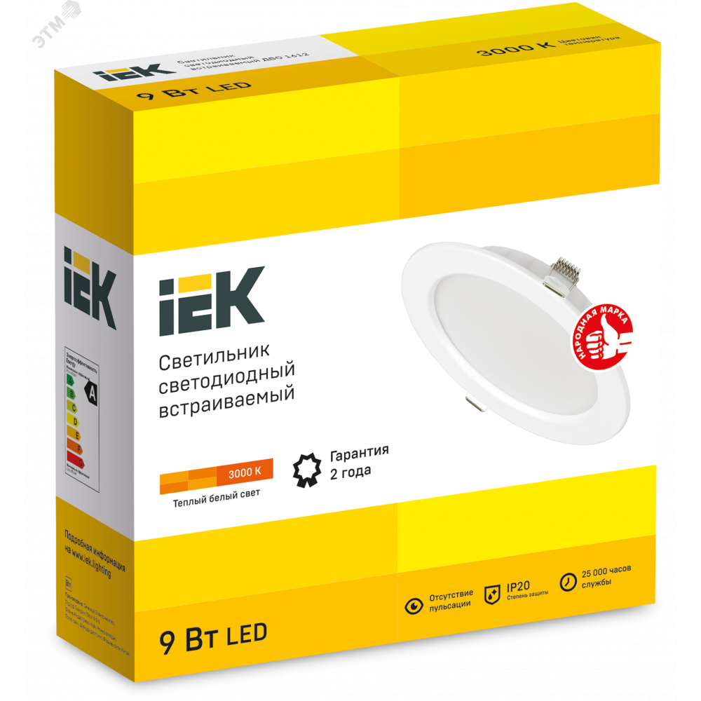 Описание Светильник LED ДВО 1612 белый круг 9Вт 3000К IP20 LDVO0-1612-09-3000-K01