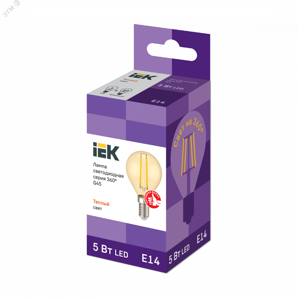 Лампа LED G45 шар золото 5Вт 230В 2700К E14 серия 360° IEK с нитевидным светодиодом (филаментная нить) является одним из самых эффективных источников света.
