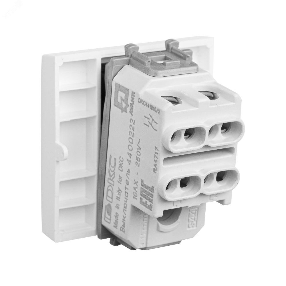 Выключатель двухполюсный одноклавишный модульный, "Avanti", "Белоеоблако", 2 модуля(к 4400222, Изделие электроустановочное