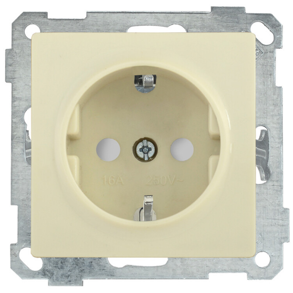 РС14-1-0-Б Розетка с з/к с з/ш 16А BOLERO кремовый ERB14-K33-16, Розетка скрытого монтажа