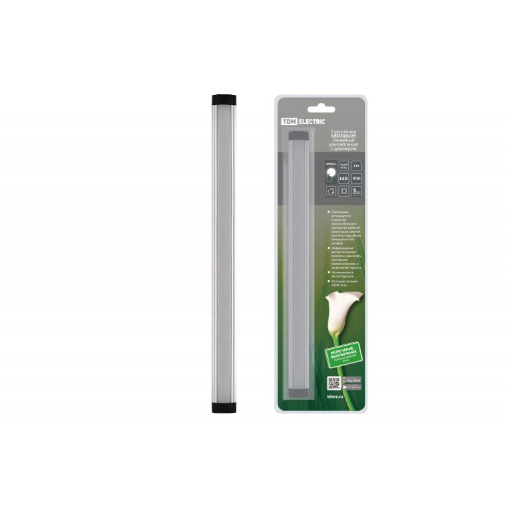 Описание Светильник LED300х25 линейный ультратонкий, 3 Вт, 230 В, IR-сенсор, 4000К, SQ0329-3609