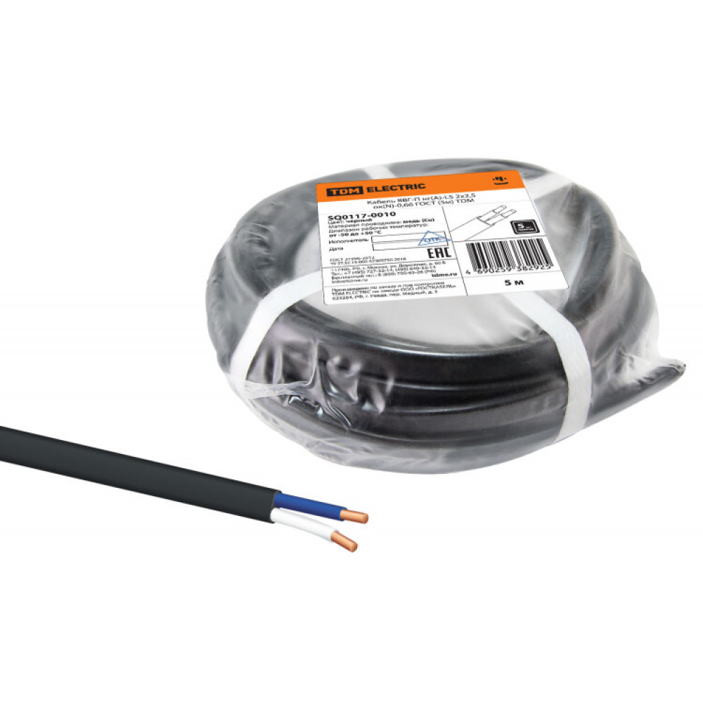 Кабель ВВГ-П нг(А)-LS 2х2,5 ок(N)-0,66 ГОСТ (5м) SQ0117-0010, Кабель и провод силовой для стационарной прокладки