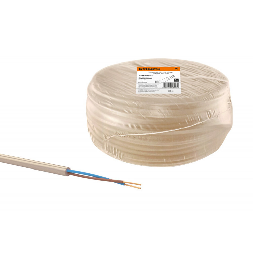 Провод ПВС 2х0,75 ГОСТ (20м), бежевый "ЭКО" SQ0119-0033, Кабель и провод силовой гибкий