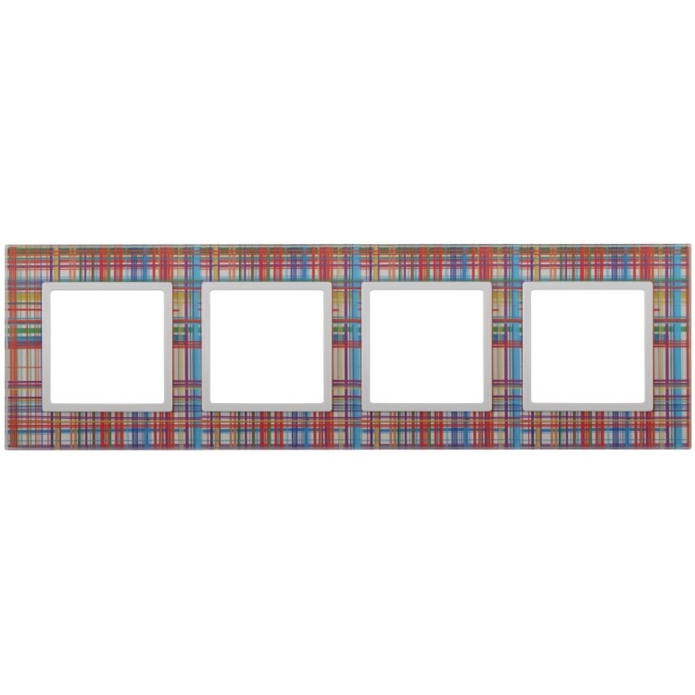 14-5104-00 Рамка на 4 поста, стекло, Elegance, прозрачный+бел (5/25/1200) Б0034523, Аксессуар для скрытого монтажа