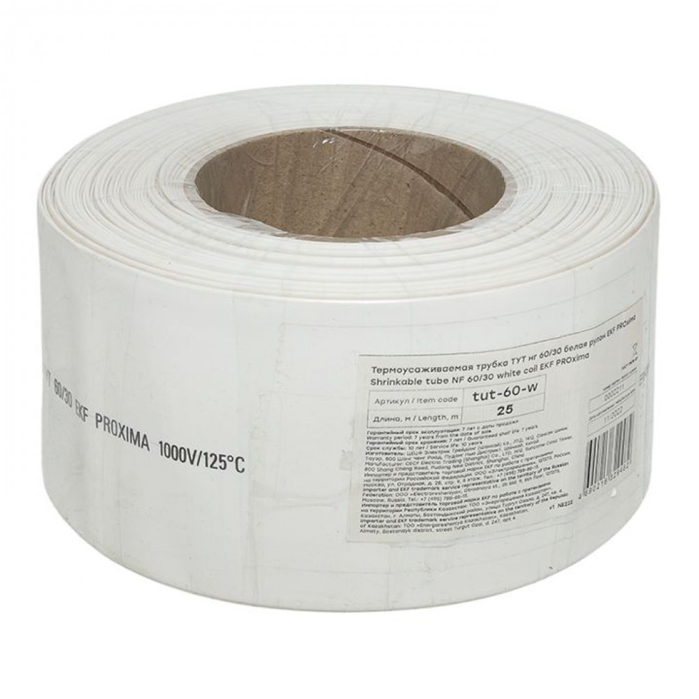 Описание Термоусаживаемая трубка ТУТ нг 60/30 белая рулон PROxima tut-60-w