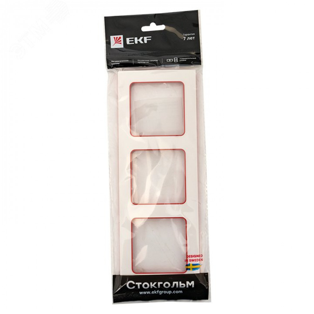 Описание Стокгольм Рамка 3-местная белая с линией цвета красный PROxima EAM-G-304-10
