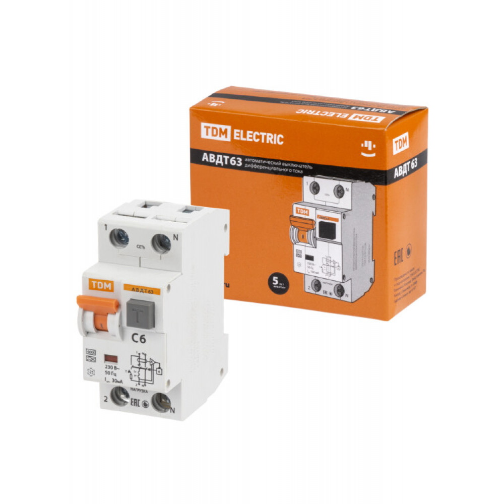 АВДТ 63 2Р(1Р+N) C6 30мА 6кА тип А SQ0202-0100, Дифференциальная защита: УЗО, дифф блок