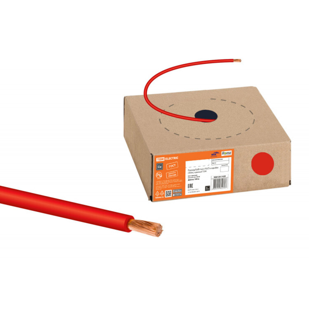 Провод ПуГВ 1х2,5 ГОСТ в коробке (100м), красный SQ0124-1429, Кабель и провод силовой гибкий