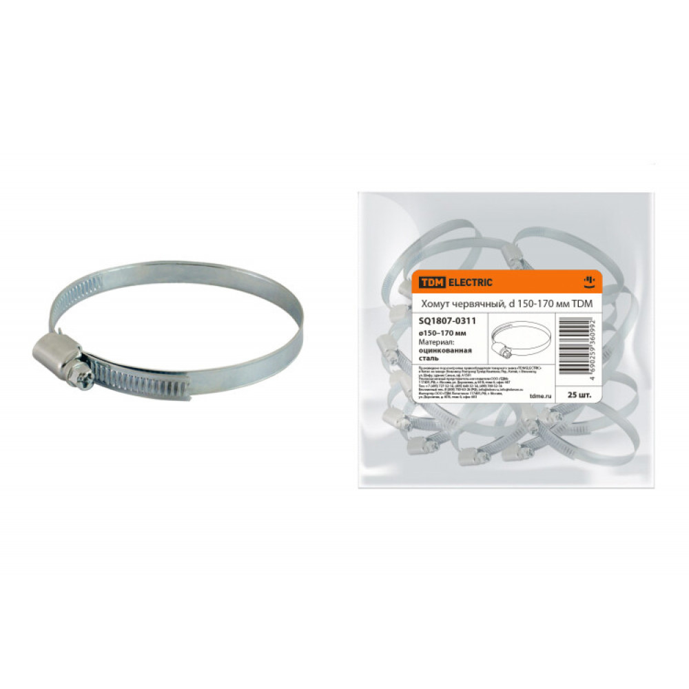Хомут червячный, d 150-170 мм SQ1807-0311, Труба и короб для прокладки кабеля