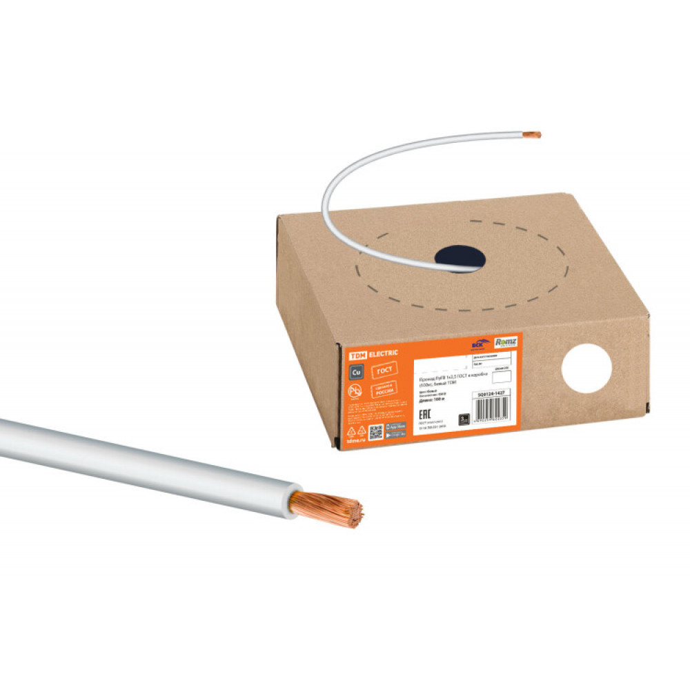Провод ПуГВ 1х2,5 ГОСТ в коробке (100м), белый SQ0124-1427, Кабель и провод силовой гибкий