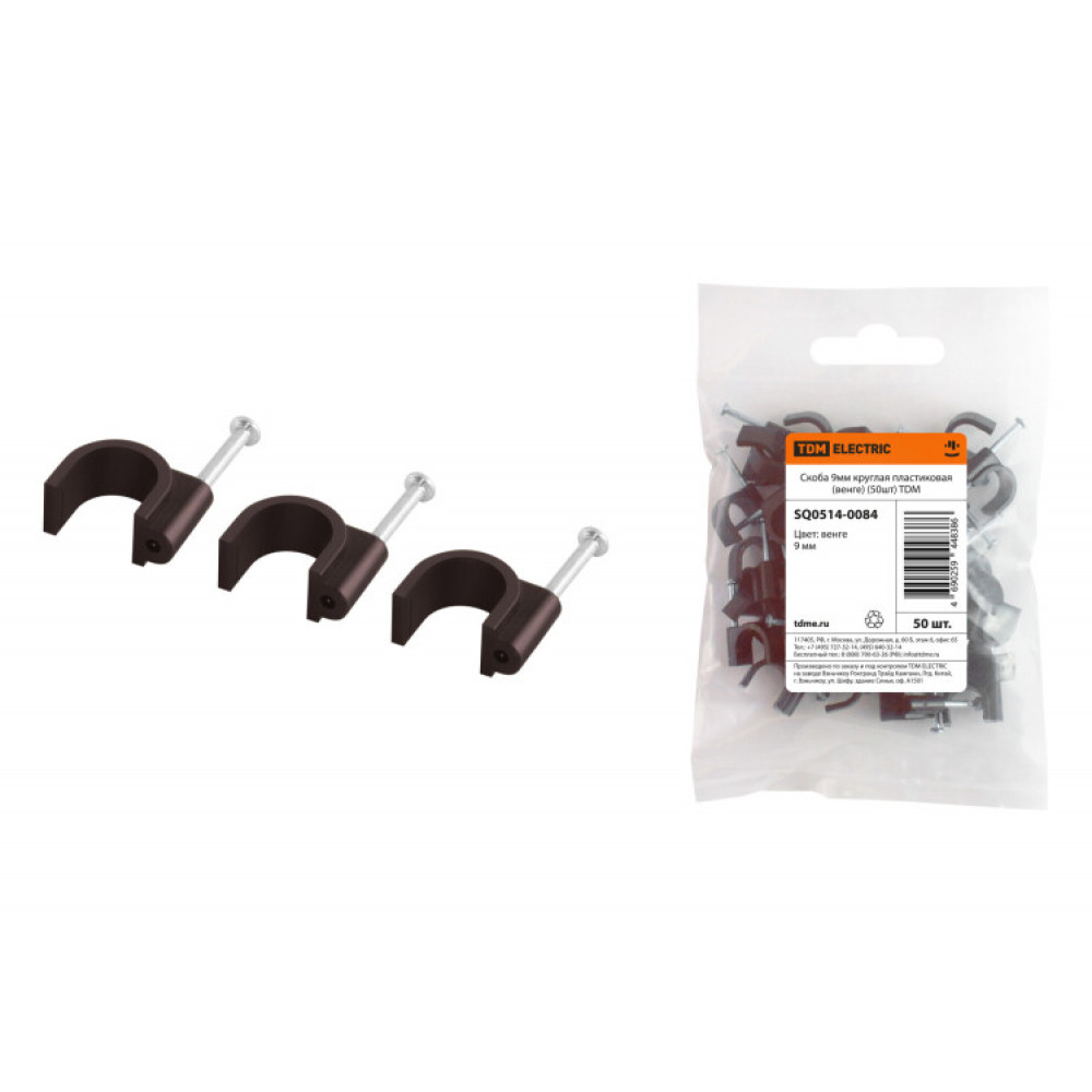 Описание Скоба 9мм круглая пластиковая (венге) (50шт) SQ0514-0084