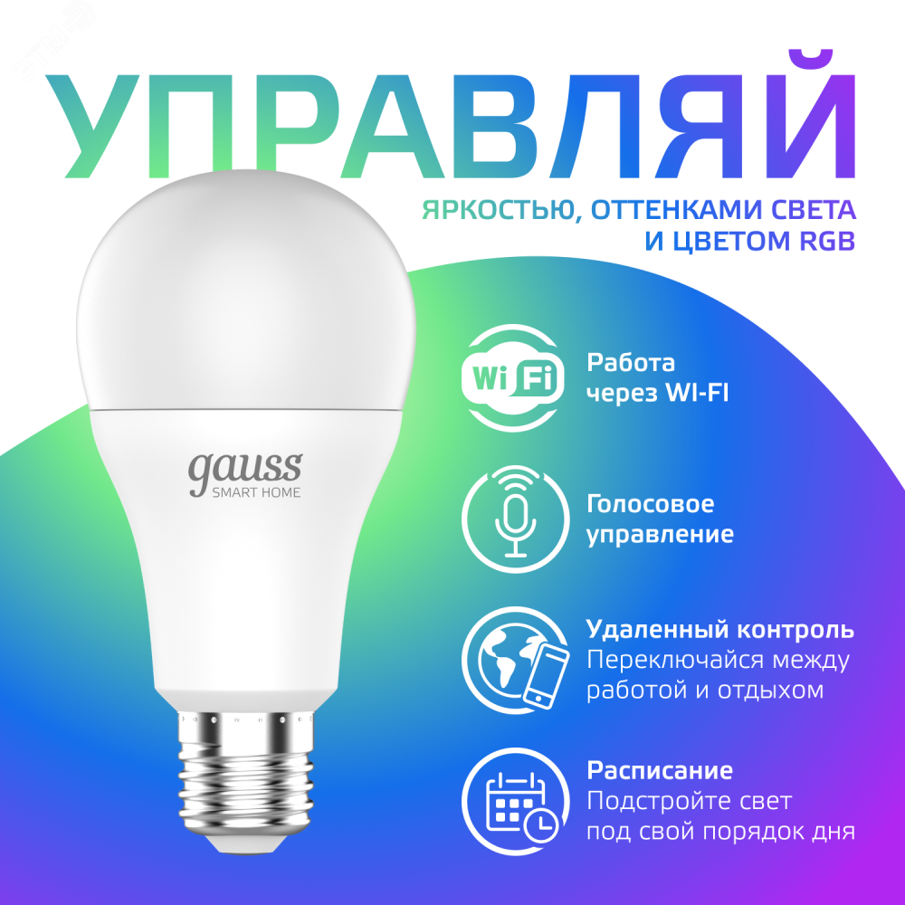 В линейке ''умных'' SMD-ламп Gauss Smart Home представлены светодиодные источники света всех трех групп. Вы можете найти в ней классические (A60) лампы с изменяемой яркостью мощностью 8,5 Вт и 10 Вт и индексом цветопередачи, CRI, 80%, а также декоративную лампу ''свеча'' (С37) мощностью 5 Вт. Цветовая температура ламп 2700 К соответствует теплому, золотисто-желтому оттенку белого света. Такие же характеристики (мощность и индекс цветопередачи) имеют ''умные'' лампы Gauss Smart Home с изменяемой цветовой температурой. В этой группе также представлены две лампы А60 и одна С37. Как следует из названия группы, свечение этих источников света может меняться от теплого золотисто-желтого цвета до холодного ослепительно-белого. (В диапазоне коррелированных цветовых температур от 2700 К до 6500 К). Тем, кому хочется увидеть воочию, как ''умное освещение'' работает во всех режимах, советуем обратить внимание на лампы с изменяемой цветностью, или RGBW-лампы А60 и С37, составляющие третью группу.