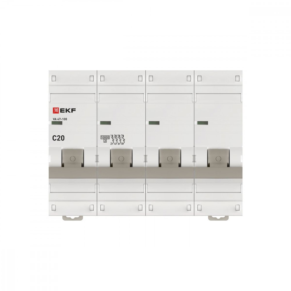Описание Автоматический выключатель 4P 20А (C) 10kA ВА 47-100 PROxima mcb47100-4-20C-pro