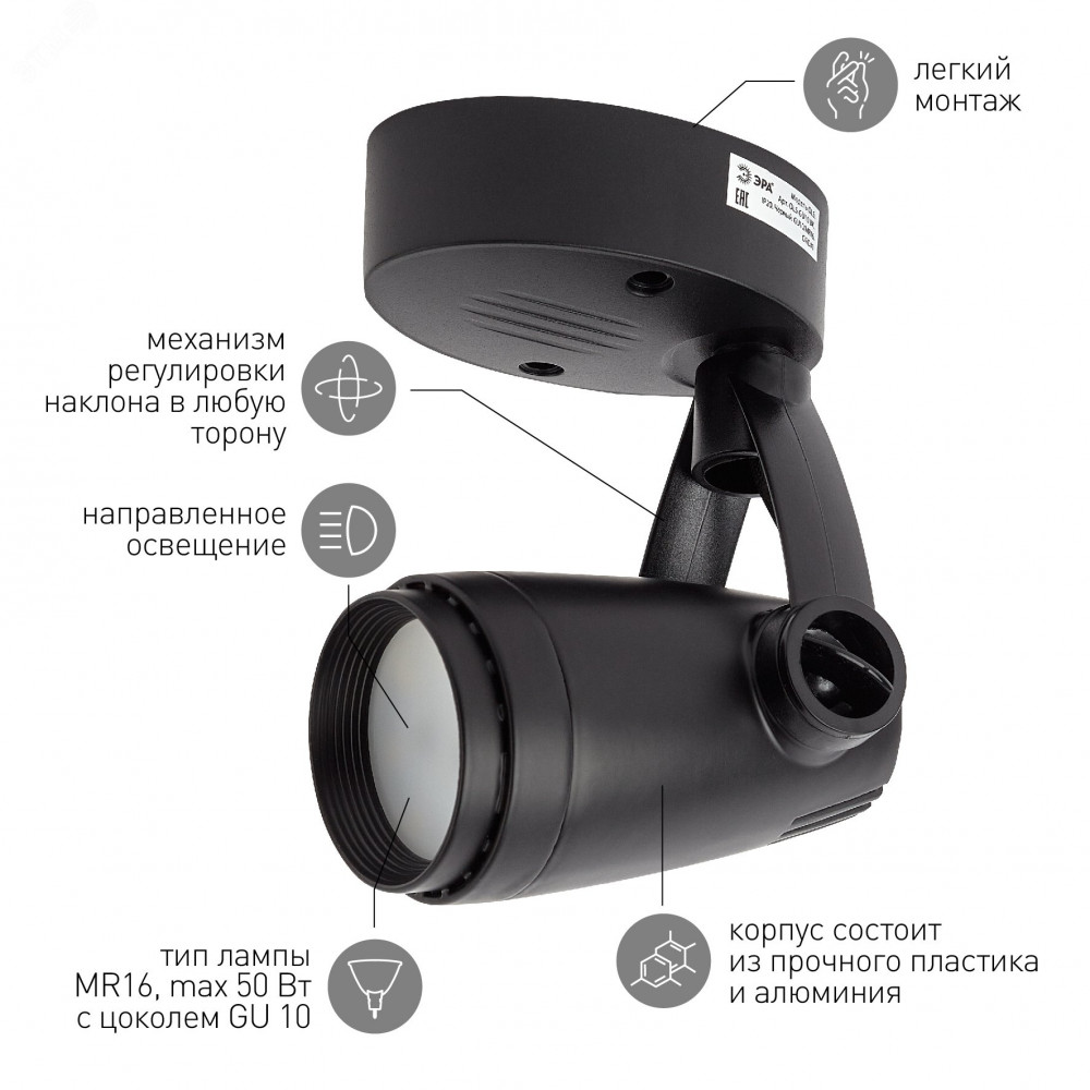 Описание OL5 GU10 BK Светильник Накладной, черный (50/600) Б0044272