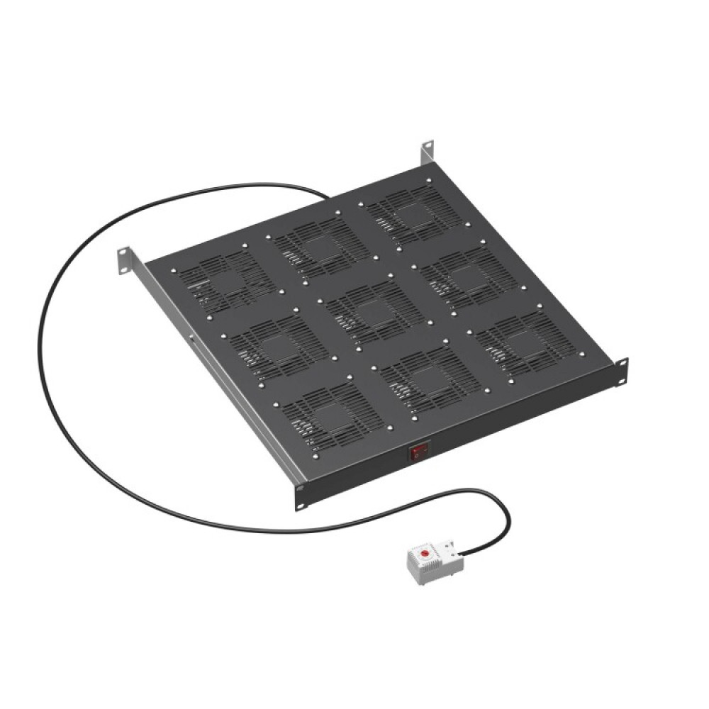 19" Вентиляторный модуль 9 вентиляторов с термостатом для 19" IT-корпусов ДКС серии STI/CQE, RAL9005 R519VSIT9FTB, Элемент шкафа электронный