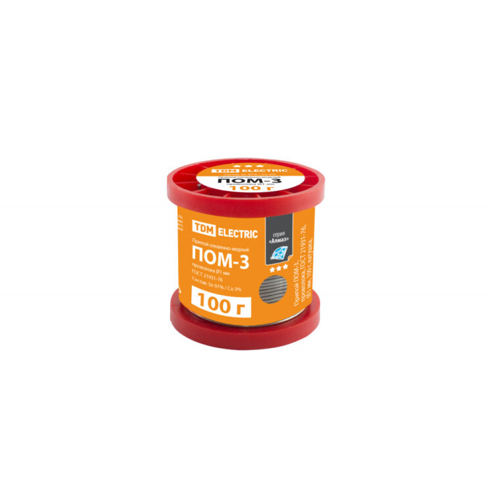 Припой ПОМ-3, проволока, ГОСТ 21931-76, 1 мм, 100 г, катушка, серия "Алмаз" SQ1025-0341, Припой без флюса