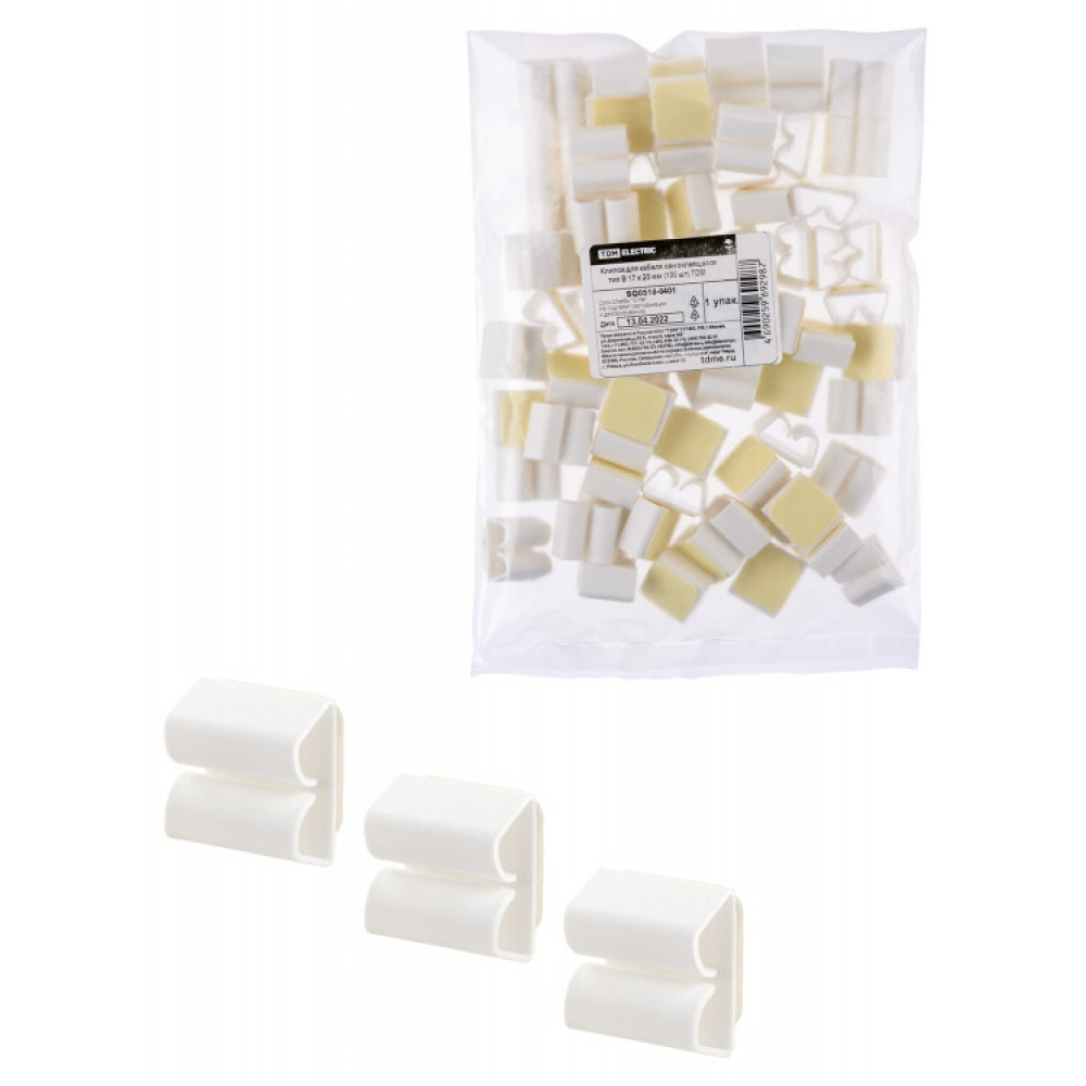 Описание Клипса для кабеля самоклеящаяся тип B 17х20 мм (100шт) SQ0516-0401