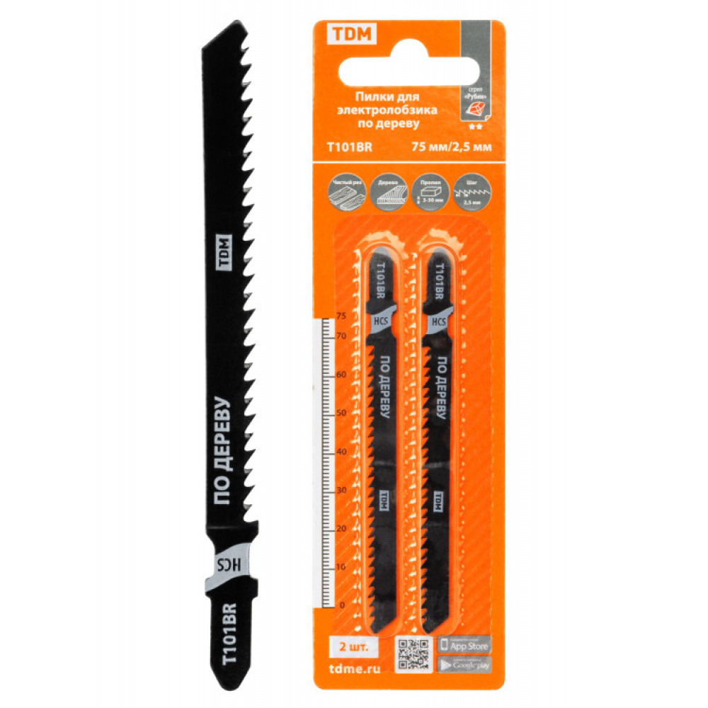 Описание Пилки для электролобзика по дереву, HCS, 75х2,5 мм, чистый рез, T101BR, 2 шт, "Рубин", SQ1089-0203