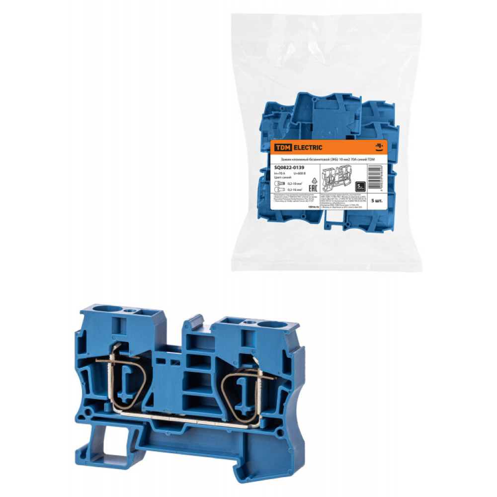 Зажим клеммный безвинтовой (ЗКБ) 10мм2 70А синий SQ0822-0139, Клемма на DIN-рейку