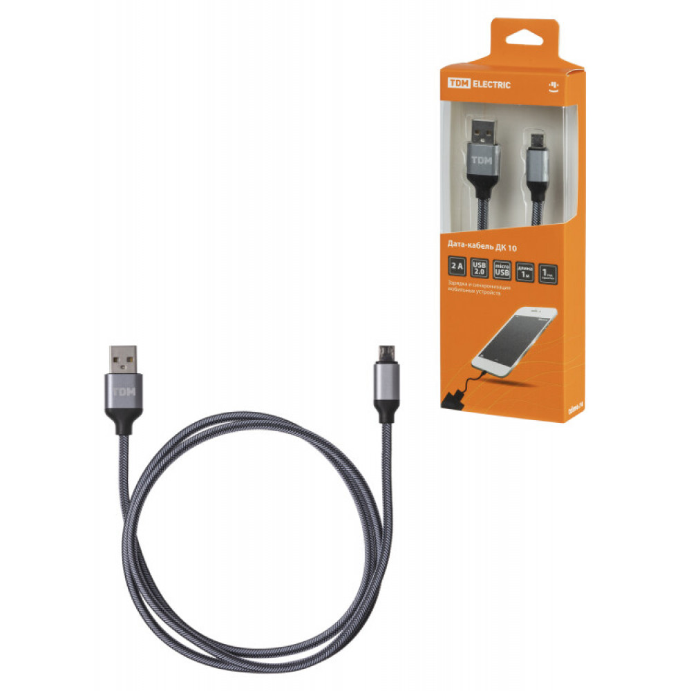 Описание Дата-кабель, ДК 10, USB - micro USB, 1 м, тканевая оплетка, серый, SQ1810-0310