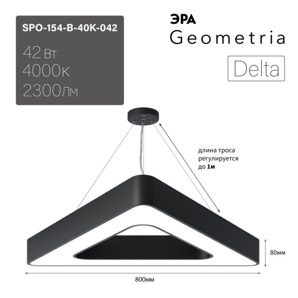 Описание Светильник светодиодный Geometria Delta SPO-154-B-40K-042 42Вт 4000К 2300Лм IP40 800*800*80 черный подвесной Б0050581